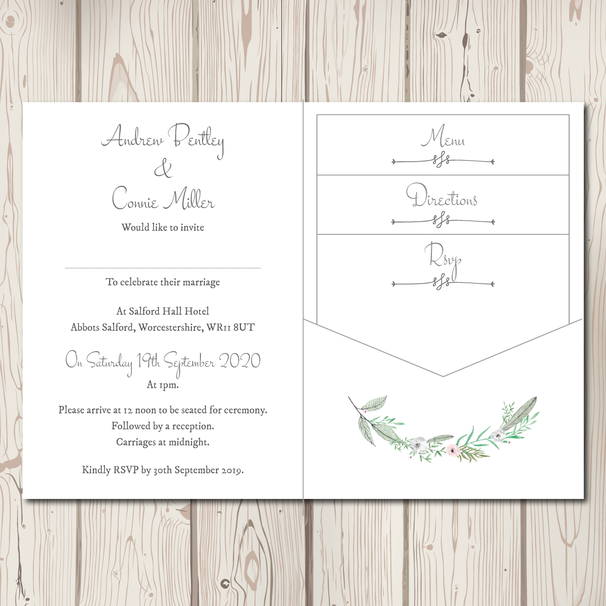 A new more delicate and modern Floral elegance range has now been added to the site, including a new portrait pocketfold. Our original floral elegance folded wedding invitation was our first ever order from the website over 6 years ago, so it was hard to let go of!