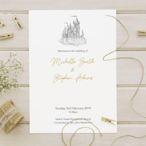 All of our order of service sheets are personalized with your wedding details. Most people find 4 pages of text sufficient but more pages can be added for longer ceremonies. All of your hymns and readings can be included in full or just titles if you’d prefer.